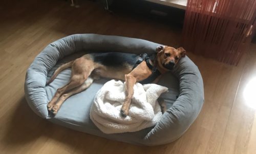 Das Bett ist sehr kuschelig und wie man sieht haben hier so einige Hunde (oder auch Katzen) Platz  🙂