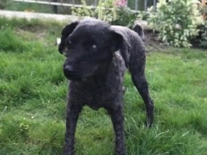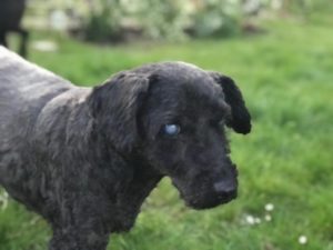 Das ist Polly aus Dombovar (geb. ca. 2012), sie kam völlig abgemagert, verwahrlost und blind in die Tötung. Sie war völlig verstört und reagierte auf nichts, daher dachte man sie sei auch noch taub.