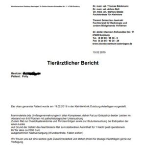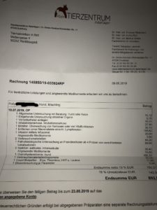 Heute erhielten wir die erste Rechnung – die erste Milchleiste wurde entfernt. Der Rechnungsbetrag lautet über 892,87 Euro. Polly geht es soweit gut! Die zweite Milchleiste muss noch entfernt werden!