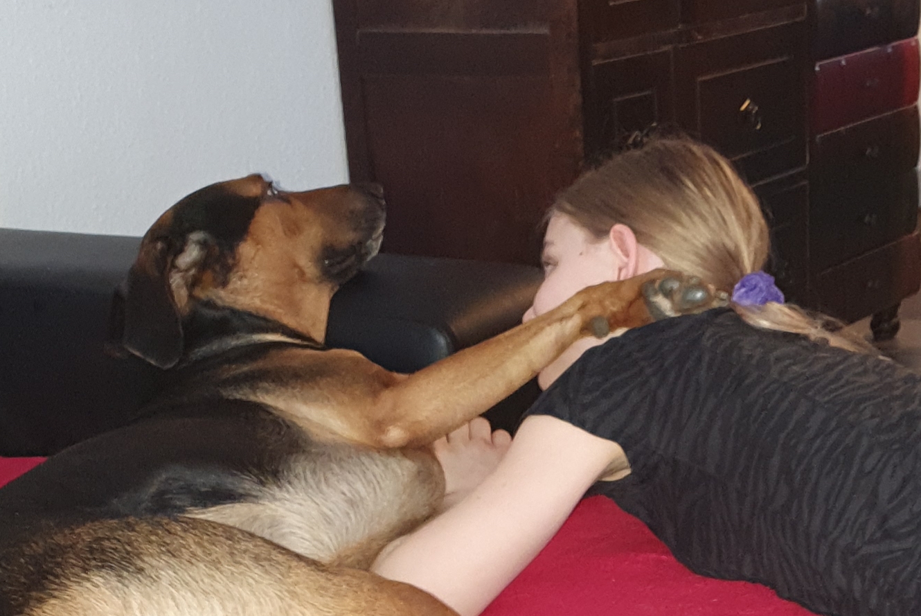 Nachfolende Fotos zeigen Jordan mit ihren beiden Hunden 🙂