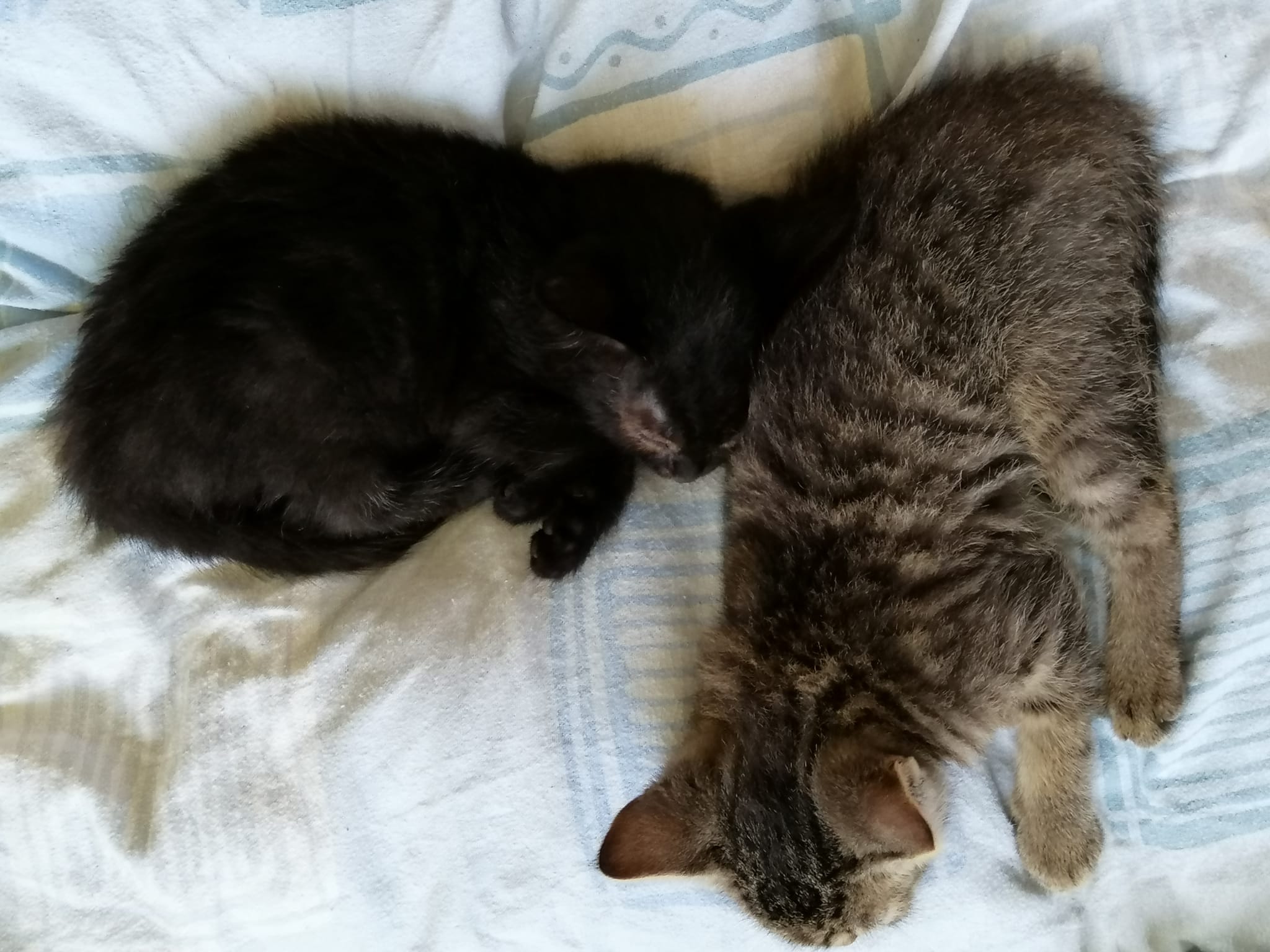 Die Mama Katzen habe ich mit Namen versehen und sterilisieren lassen (ich konnte mich durchsetzen, weil ich die Kosten übernommen habe) und sie konnten weiter bei ihren Besitzern bleiben. Unsere Kleinen wurden alle sterilisiert/kastriert und leben bei uns. Wir wohnen am Ortsrand mit kleinem Wald am Haus, viel Garten und dann Felder. Zur gleichen Zeit, als wir eingezogen sind, ist im Nachbarhaus auch eine ung. Familie mit drei Kindern eingezogen. Sie hatten ständig Katzen, diese hatten Junge…. Letztendlich waren bis zum Schluß, als sie endlich vor zwei Jahren weggezogen sind, 8 Katzen bei uns gelandet, weil sie sich nicht gekümmert haben, nicht gefüttert… Eine von den Katzen hat bei uns 3 Babys bekommen, die sie nicht mehr zurück haben wollten und dann bei uns blieben.