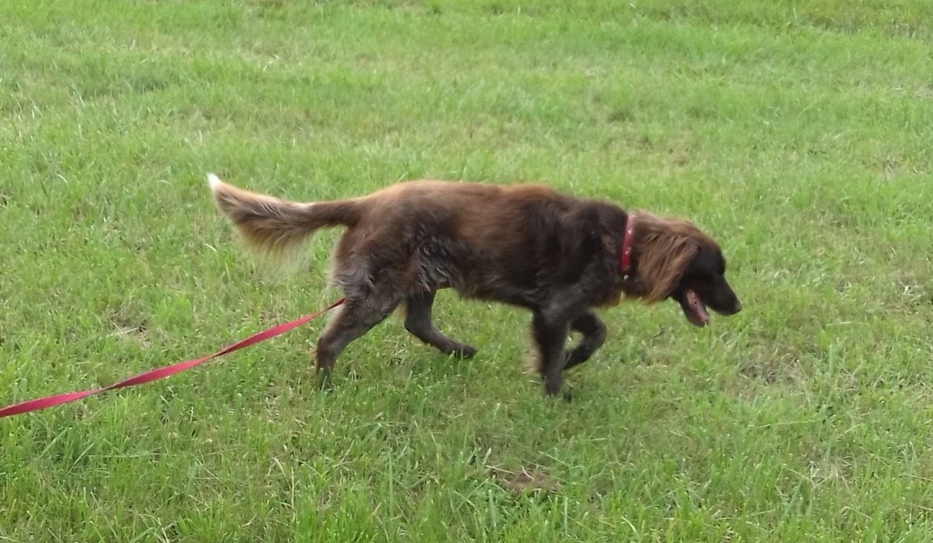 Er läuft ganz toll an der Leine und lässt sich gut führen. Mit unseren beiden Hunden (Rüde und Hündin) verträgt er sich gut. Bei anderen Hunden ist er manchmal etwas unsicher und brummelt dann ein bisschen vor sich hin, wenn sie ihm zu nahe kommen. Er ist aber in keiner Weise aggressiv, sondern braucht einfach Zeit, um fremde Hunde kennenzulernen.