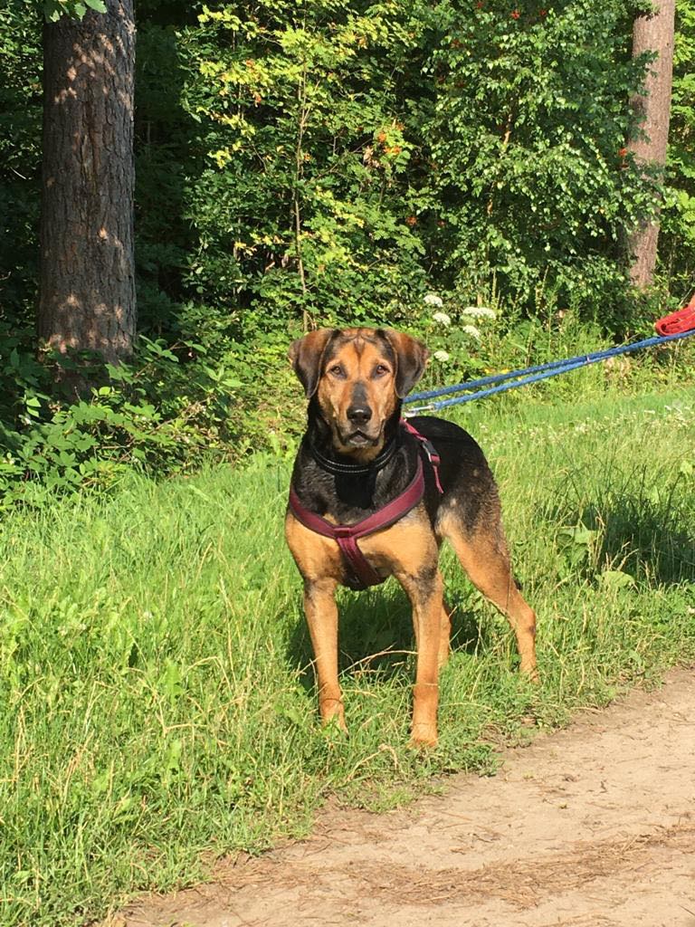 Buksi ist seit dem 18.07.21 auf PS in Erlangen. Hier lebt sie mit einem Welpen und einer großen Hündin friedlich zusammen. Gemeinsame Spaziergänge mit anderen Hunden klappen auch, nur wenn ihr ein Hund entgegenkommt, hat sie Angst und knurrt und bellt. An der Leine läuft sie ansonsten sehr gut. Die Katzen sind nicht so ihr Ding, die würde sie gern jagen.