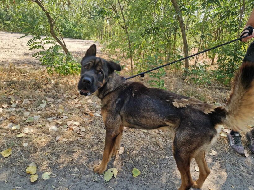 Hobo ist verträglich mit anderen Hunden und geht sogar schon an der Leine spazieren. Er wurde wohl nicht misshandelt, aber es hat sich sicher auch noch nie jemand richtig um ihn gekümmert. Jetzt genießt er die Streicheleinheiten und natürlich auch das regelmäßige Füttern. Er wurde schon gut aufgepäppelt, jetzt fehlt nur noch das passende Zuhause für den großen lieben Kerl.
