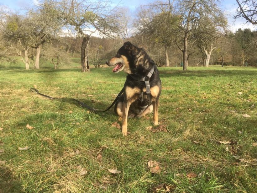 Geschlossene Treppen (gefliest) geht Sie schon, aber z.B. von EG zu 1.OG geht Sie noch nicht (offene Holzstufen). Den Garten findet Sie toll. Die Arbeit mit der Nase ist genau Ihr Ding. Sie riecht Rehe ewig vor Ihrem PS Kumpel und wird dann ganz „ drahtig“.