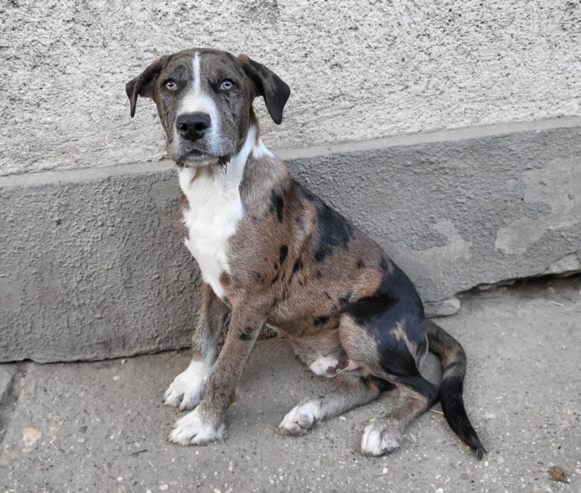 Dort ist Monti mit anderen Hunden zusammen, spielt und tollt mit ihnen herum. Die Rasse von Monti weiß man nicht, er hat eine recht seltene Fellzeichnung und auch sehr ausdrucksstarke Augen. Er wird auf jeden Fall mal ein grosser Hund und sollte deshalb in erfahrene Hände kommen. Zu Menschen ist er sehr freundlich und nett. Er liebt es bei den heissen Temperaturen in seinem Hundepool zu baden. Er ist sehr verfressen und verteidigt sein Futter, dass es ihm niemand wegnimmt. Aber mit guter Erziehung wird er sicherlich ein ganz toller Hund und guter Begleiter fürs Leben.