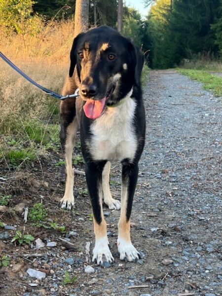 Deshalb wird nun für Nana eine Familie gesucht wo sie für immer bleiben darf, sie soll kein Wanderpokal werden. Sie ist vom Charakter her ein zauberhafter Hund. Immer gut drauf, freundlich, lustig, verschmust, verspielt. Sie läuft sehr gut an der Leine und zieht gar nicht, reagiert gleich auf eine kleine Korrektur. Ist sehr klug und lernt schnell. Klar, wenn sie mal was interessantes sieht und sie springt drauf zu (z.B. Hühner) dann springt sie mal kurz in die Leine. Aber sowas bekommt man in den Griff.