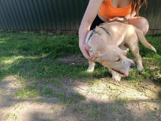 Nelli ist eine junge Hündin, die zusammen mit ihren Schwestern streunend aufgegriffen wurde. So kamen sie ins Tierheim.