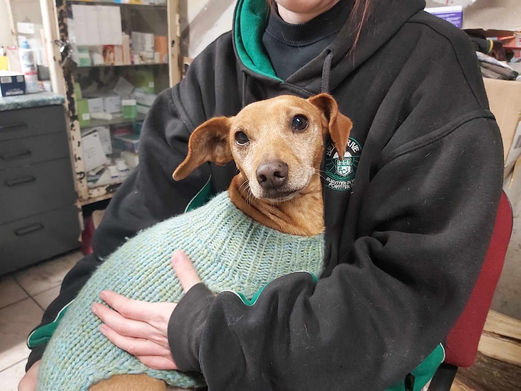 hochheben – auch an der Leine läuft er schon recht gut. Er ist nun  bereit für ein liebevolles Zuhause, sehr gern auch als Zweithund.