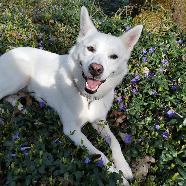 Bei interessanten Reizen muss die Leinenführigkeit noch etwas gefestigt werden. Neue Hunde bellt sie zu Beginn an, versteht sich dann aber mit den meisten nach einem Beschnuppern richtig gut. Schnell fordert sie diese auch zum Spielen auf. Am Spielen mit dem Ball oder anderem Spielzeug hat sie noch keinen Gefallen gefunden. Mit Kausachen beschäftigt sie sich hingegen sehr gerne.