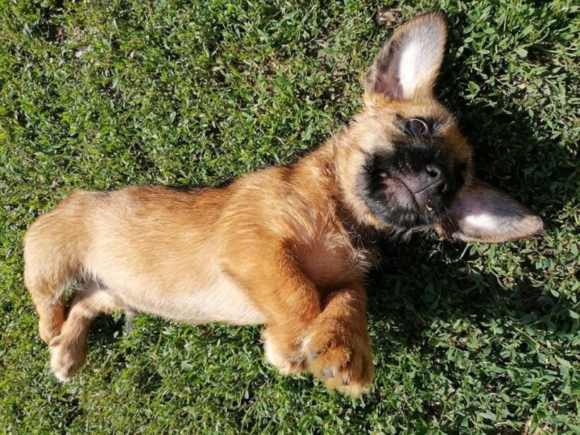 Töki wurde von einem Straßenarbeiter im Straßengraben gefunden. Vermutlich hatte ihn ein Auto gestreift weil er sehr eingeschüchtert war und auch nicht laufen wollte. Es wurde vermutet dass er evtl. eine Prellung hatte, aber nach einiger Zeit wurde er ruhiger und fasste Mut und fing an mit den anderen Hunden zu spielen.