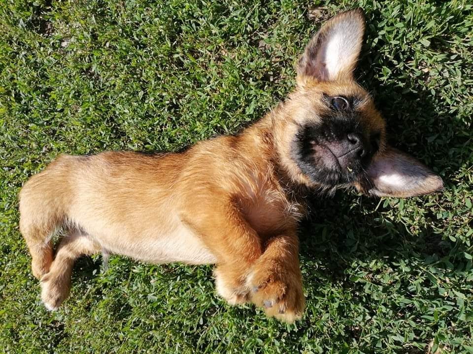 Er ist ein richtiger kleiner Kobold der keinerlei Angst vor anderen Hunden hat, egal welcher Grösse. Er ist sehr klug, agil und clever und lernt sehr schnell. Man vermutet daß auch ein Dackel in ihm steckt, im Moment sind die Beine relativ kurz. Etwas wachsen wird er sicherlich noch, aber richtig groß wird er nicht werden. Er kann auf Grund des Alters auch zu Katzen, diese sollten allerdings hundeerfahren sein weil er mit allem und jedem spielen möchte.