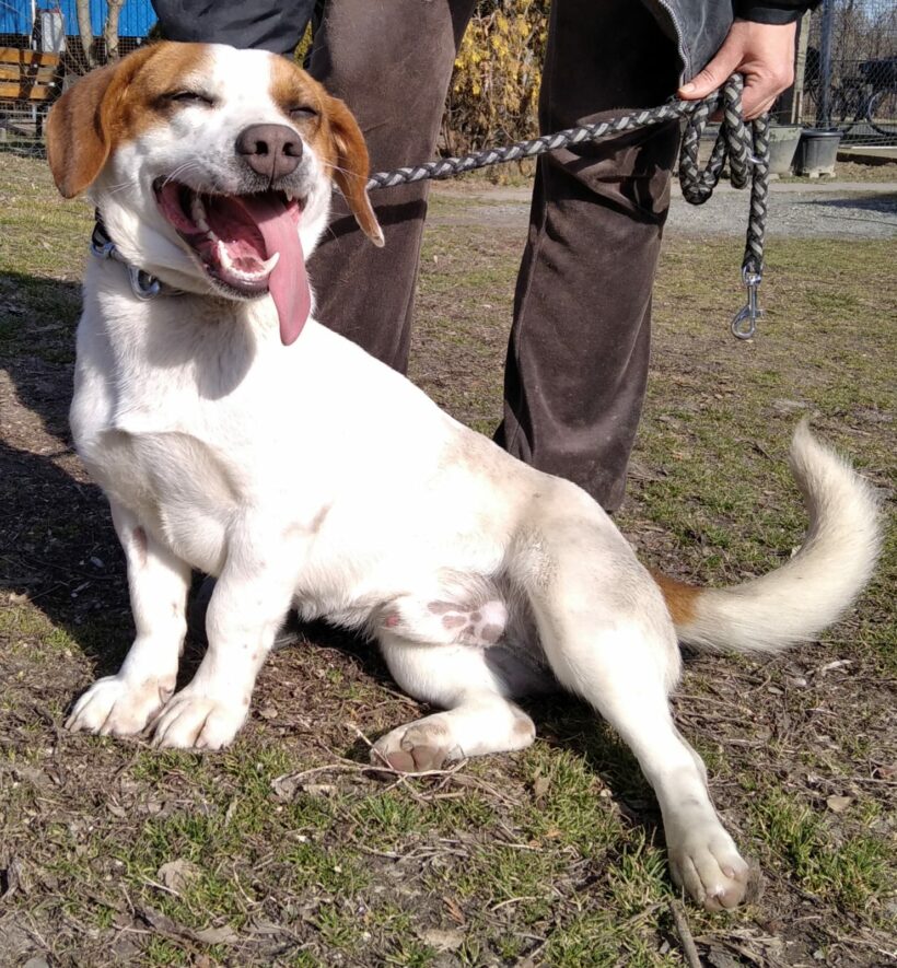 Tomi ist größer als wir dachten- kein Jack-Russell-Mix- eher Beaglemix. Er ist 39 cm hoch (Schulterhöhe) und wiegt 16 kg. Deshalb passte er nicht in sein geplantes Zuhause.